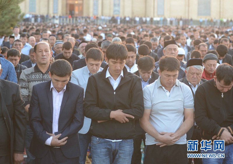 9月24日,在烏茲別克斯坦首都塔什干哈斯特·伊瑪姆建筑群清真寺廣場(chǎng),人們參加古爾邦節(jié)禮拜。當(dāng)天,烏茲別克斯坦各地慶祝伊斯蘭教傳統(tǒng)節(jié)日古爾邦節(jié)?!肮艩柊罟?jié)”亦稱“宰牲節(jié)”,是伊斯蘭教三大節(jié)日之一。 新華社記者沙達(dá)提 攝