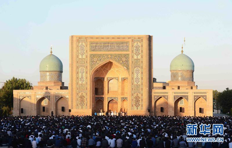 ?。乖拢玻慈?,在烏茲別克斯坦首都塔什干哈斯特·伊瑪姆建筑群清真寺廣場(chǎng),人們參加古爾邦節(jié)禮拜。當(dāng)天,烏茲別克斯坦各地慶祝伊斯蘭教傳統(tǒng)節(jié)日古爾邦節(jié)?!肮艩柊罟?jié)”亦稱(chēng)“宰牲節(jié)”,是伊斯蘭教三大節(jié)日之一。 新華社記者沙達(dá)提 攝