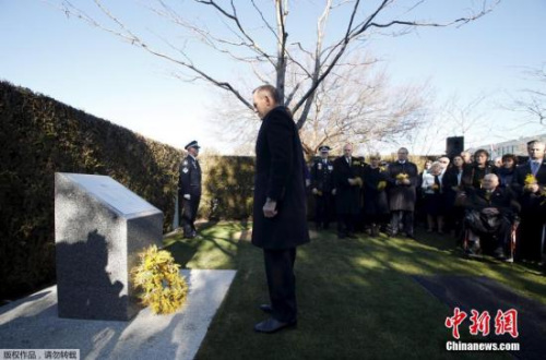 資料圖:當(dāng)?shù)貢r(shí)間2015年7月17日,澳大利亞堪培拉,馬航MH17空難一周年之際,國(guó)會(huì)大廈外舉行馬航MH17遇難者紀(jì)念碑揭幕儀式,澳大利亞總理托尼·阿博特?cái)y妻子向紀(jì)念碑獻(xiàn)花。2014年7月17日,載有298人的馬航MH17客機(jī)在靠近俄羅斯邊界的烏克蘭頓涅茨克地區(qū)墜毀,機(jī)上乘客與機(jī)組成員全部遇難。