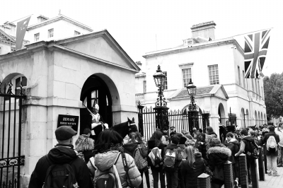 10月16日,在英國(guó)倫敦皇家騎兵衛(wèi)隊(duì)檢閱場(chǎng),正門(mén)外已掛出大幅中英兩國(guó)國(guó)旗,往來(lái)游人與身穿傳統(tǒng)制服的衛(wèi)隊(duì)哨兵合影留念。20日,為前來(lái)英國(guó)進(jìn)行國(guó)事訪(fǎng)問(wèn)的習(xí)近平主席舉行的歡迎儀式將在這里進(jìn)行?,F(xiàn)場(chǎng)將鳴放21響禮炮,女王伊麗莎白二世與其丈夫愛(ài)丁堡公爵菲利普親王將陪同習(xí)近平主席檢閱英國(guó)皇家儀仗隊(duì)。隨后,女王夫婦將陪同習(xí)近平主席夫婦從這里乘坐皇家馬車(chē)前往白金漢宮,并共進(jìn)午宴。 本報(bào)駐倫敦記者 戴軍攝