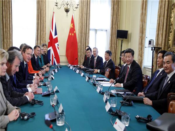 習(xí)近平說:“中英關(guān)系和中歐關(guān)系發(fā)展面臨繼往開來的重要機(jī)遇。英國是歐盟重要成員國,中英關(guān)系同中歐關(guān)系相輔相成。”
