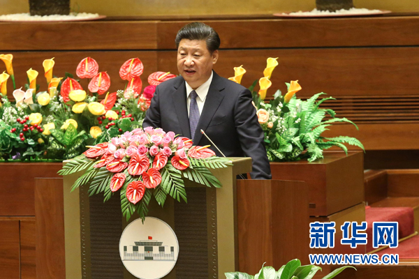 ???? 11月6日,中共中央總書記、國(guó)家主席習(xí)近平在越南國(guó)會(huì)發(fā)表題為《共同譜寫中越友好新篇章》的重要演講。 新華社記者 龐興雷 攝