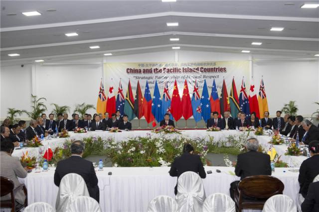 ——習(xí)主席2014年11月22日同太平洋島國領(lǐng)導(dǎo)人舉行集體會晤并發(fā)表主旨講話。