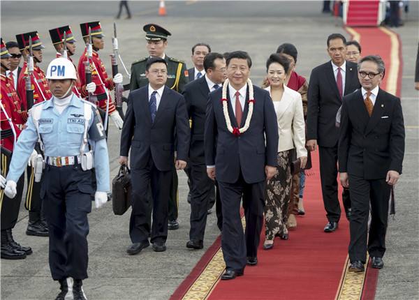 圖為2013年10月2日,習(xí)近平抵達雅加達開始對印度尼西亞進行國事訪問。(馬占成攝)