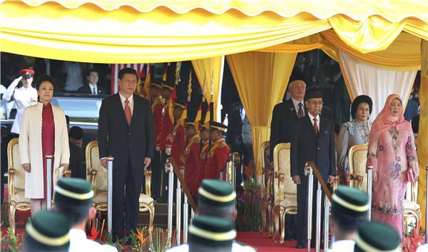 圖為2013年10月4日,習(xí)近平出席馬來西亞最高元首舉行的歡迎儀式。(龐興雷攝)