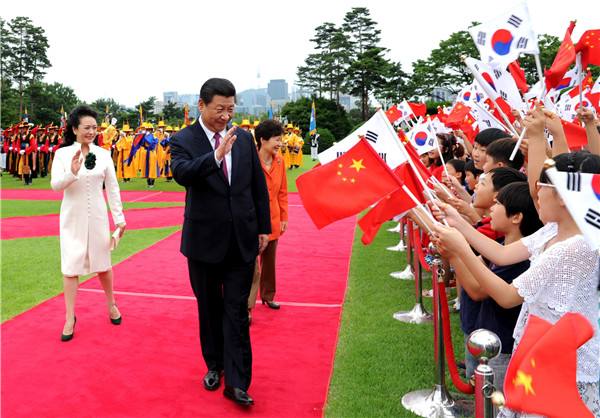 2014年7月3日,習(xí)近平抵達首爾,對韓國進行國事訪問。