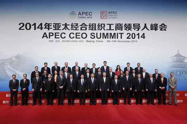 2014年11月9日,國家主席習(xí)近平同與會(huì)亞太工商界代表合影。