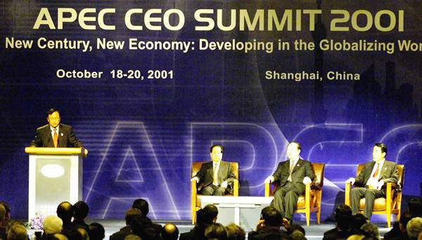 2001年10月18日APEC工商領(lǐng)導(dǎo)人峰會(huì)在上海舉行。