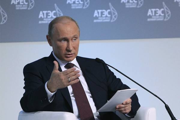 2012年9月7日,俄羅斯總統(tǒng)普京在APEC工商領(lǐng)導(dǎo)人峰會(huì)上講話。