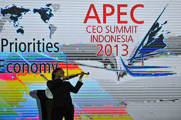 2013年10月6日,一名小提琴演奏家在印度尼西亞巴厘島舉行的2013APEC工商領(lǐng)導(dǎo)人峰會(huì)開幕式上演奏。
