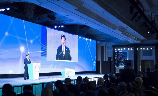 11月18日,國家主席習(xí)近平在菲律賓馬尼拉出席亞太經(jīng)合組織(APEC)工商領(lǐng)導(dǎo)人峰會并發(fā)表主旨演講。(新華社記者王曄攝)