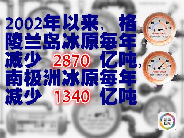 科學(xué)家認(rèn)定,由于氣溫和海水溫度升高的雙重影響,分別位于格陵蘭島和南極洲的地球兩大冰原正在消失。美國(guó)國(guó)家航空航天局噴氣推進(jìn)實(shí)驗(yàn)室收集的衛(wèi)星數(shù)據(jù)顯示,2002年以來,格陵蘭島冰原每年減少2870億噸,南極洲冰原每年減少1340億噸。