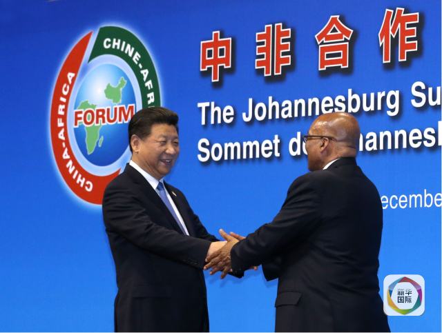 12月4日,國家主席習(xí)近平出席中非合作論壇約翰內(nèi)斯堡峰會開幕式并發(fā)表致辭。這是南非總統(tǒng)祖馬迎接習(xí)近平。(新華社記者龐興雷攝)
