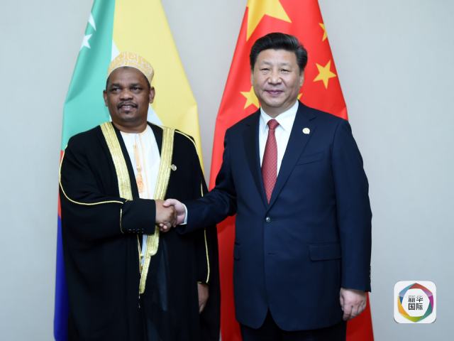 12月4日,國家主席習(xí)近平在約翰內(nèi)斯堡會見科摩羅總統(tǒng)伊基利盧。(新華社記者張鐸攝)