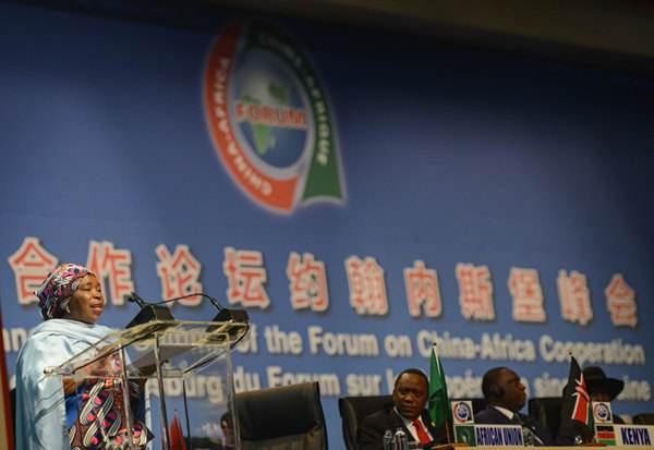 在峰會(huì)開幕式上,南非總統(tǒng)祖馬、穆加貝總統(tǒng)、非盟委員會(huì)主席恩科薩扎娜·德拉米尼-祖馬分別致辭。他們盛贊中非傳統(tǒng)友誼和合作成果,高度評價(jià)習(xí)近平主席關(guān)于深化中非合作的重要舉措,熱烈歡迎中方宣布的促進(jìn)中非合作措施,支持把中非關(guān)系提升為全面戰(zhàn)略合作伙伴關(guān)系,表示愿同中方攜手并肩,共同開創(chuàng)中非關(guān)系更加光明的未來。