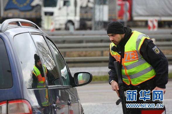 在比利時(shí)東部靠近德國亞琛的邊界,德國警方設(shè)置了路障,檢查過往車輛。記者在高速公路檢查站看到,兩名德國特警把守兩邊,所有車輛逐一通過。需要進(jìn)一步檢查的車輛按指揮進(jìn)入特定區(qū)域,德國警方要求被檢車輛司機(jī)出示證件,并對(duì)汽車內(nèi)部進(jìn)行仔細(xì)翻查。檢查站中??苛耍保岸噍v各型警車,值勤警察荷槍實(shí)彈,檢查站旁還有一架警方直升機(jī)。