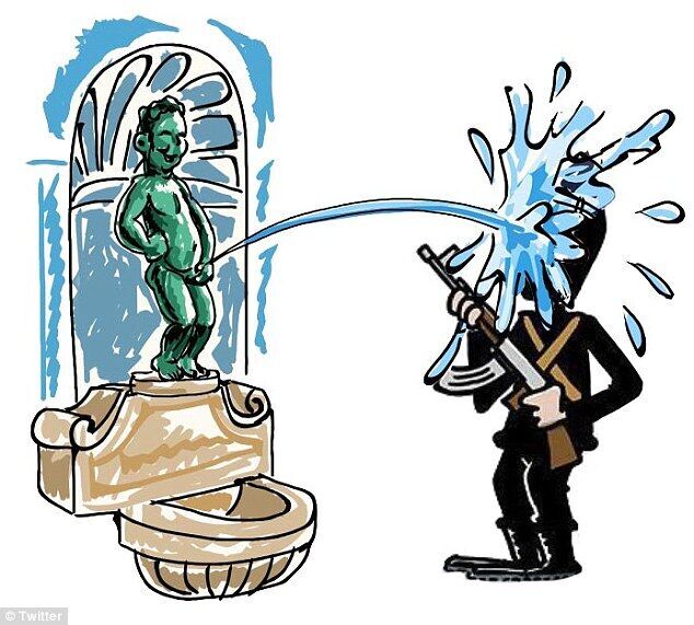 漫畫中,可愛的“撒尿小童”向代表恐怖主義的槍械和持槍者暢快地撒尿。也有網(wǎng)友將法國和比利時的國旗拼湊在一起,表達(dá)了同為恐襲受害國的法國與比利時站在一起,共同面對恐怖組織。