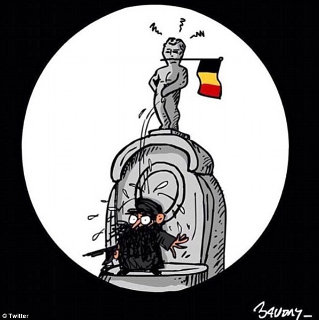 眾所周知,“撒尿小童”(Manneken Pis)是布魯塞爾廣場的標志性建筑,也是游客必游的景點。有網友就借此制作漫畫,展示對恐怖主義的藐視。