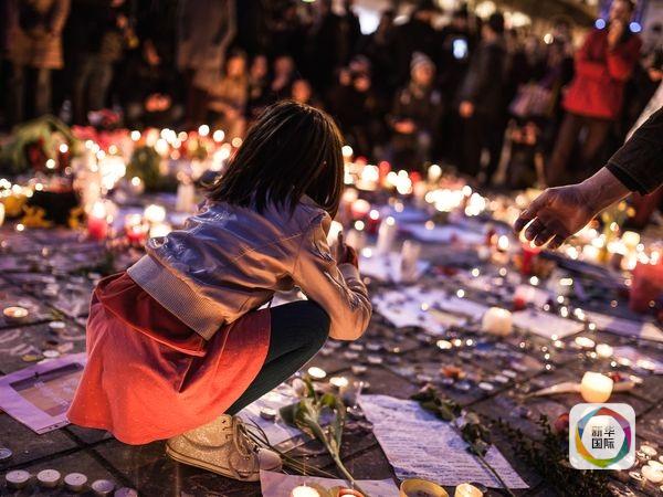 布魯塞爾市中心廣場(chǎng),女孩點(diǎn)燃悼念蠟燭。(圖片來(lái)源:新華/美聯(lián))