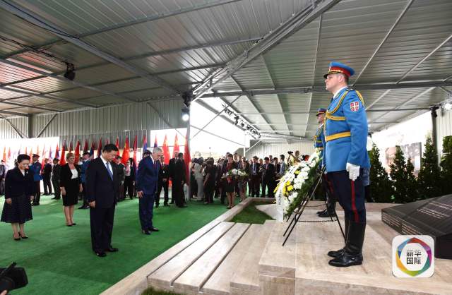 舊址上,又立起一塊新的黑色紀(jì)念碑,“緬懷烈士 珍愛和平”8個字莊嚴(yán)肅穆,落款“中華人民共和國2016年6月17日立”。紀(jì)念碑前,習(xí)主席肅立默哀,塞爾維亞總統(tǒng)、議長、總理及全體內(nèi)閣成員參加憑吊。