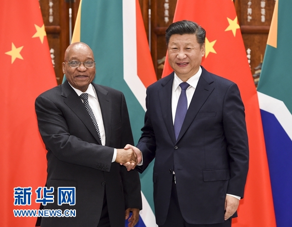 9月3日,國家主席習近平在杭州會見來華出席二十國集團領(lǐng)導(dǎo)人杭州峰會的南非總統(tǒng)祖馬。 新華社記者 李學(xué)仁 攝