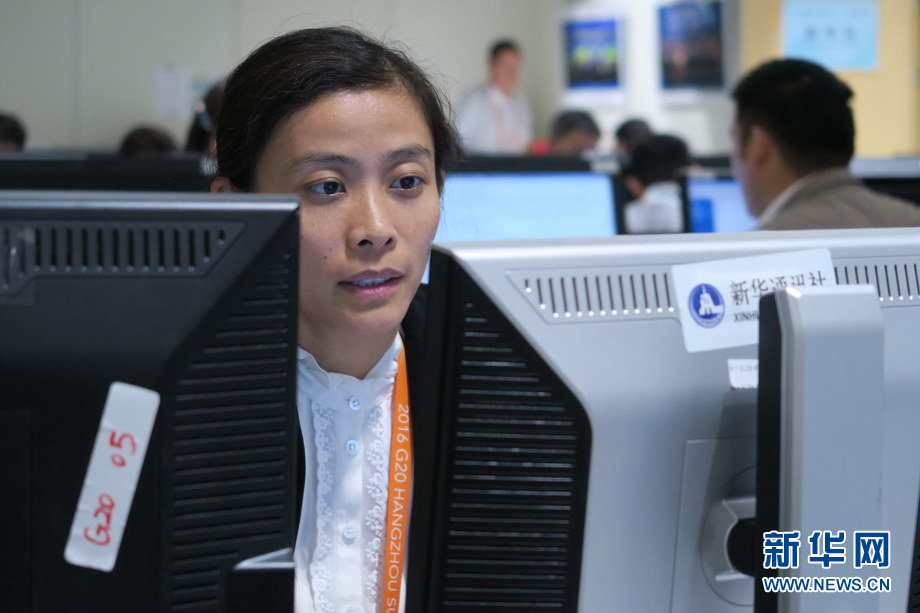 二十國集團(tuán)領(lǐng)導(dǎo)人第十一次峰會9月4日至5日在浙江杭州舉行。峰會新聞中心一派繁忙景象,境內(nèi)外各路媒體記者使出“洪荒之力”,實(shí)時報道峰會動態(tài)。新華網(wǎng)記者 陳競超 攝