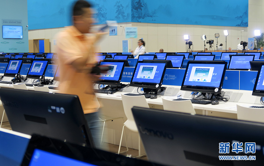 二十國集團領導人第十一次峰會9月4日至5日在浙江杭州舉行。峰會新聞中心一派繁忙景象,境內(nèi)外各路媒體記者使出“洪荒之力”,實時報道峰會動態(tài)。新華網(wǎng)記者 陳競超 攝