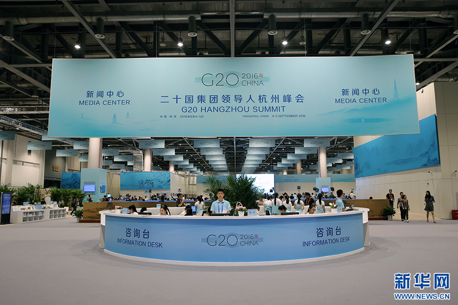 ????9月4日至5日,二十國集團領(lǐng)導人杭州峰會在浙江杭州舉行。全球媒體人匯聚一堂,關(guān)注報道峰會盛況。在G20杭州峰會新聞中心,200多位志愿者身著青白色運動服,男生外套上藍下白,象征層巒疊嶂;女生外套上白下藍,意味水波蕩漾。兩者輝映,體現(xiàn)了杭州這座古城湖光山色的獨特風韻。