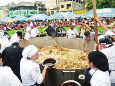 克韋多市作為“炒冷飯”的故鄉(xiāng),為了推廣國內(nèi)和國際旅游,在2013年還曾做過一個世界最大的“炒冷飯”。當(dāng)時使用的鍋直徑4米,深1.5米,使用的食材有500公斤大米、1000個雞蛋、50升油、三大桶醬油,還有上百公斤的雞肉、蝦仁等,40多名廚師學(xué)校的學(xué)生一起參與了制作?,F(xiàn)場數(shù)千民眾隨后一起享用了這個巨無霸“炒冷飯”。