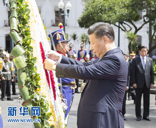 同日,習(xí)近平向厄瓜多爾獨(dú)立英雄紀(jì)念碑敬獻(xiàn)花圈。