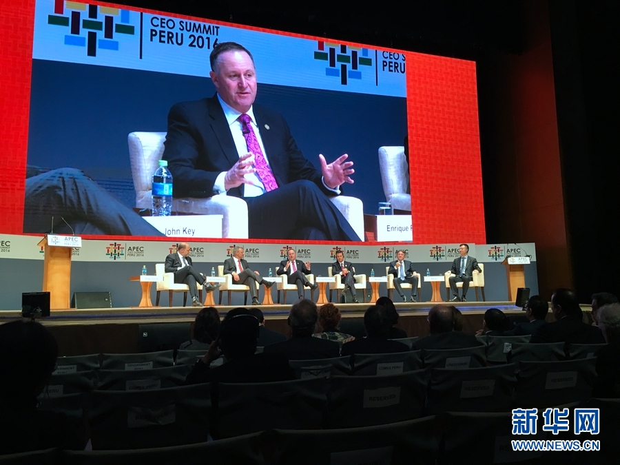 當(dāng)?shù)貢r間11月19日,APEC工商領(lǐng)導(dǎo)人峰會舉行主題為“重新設(shè)計貿(mào)易”的現(xiàn)場討論會。圖為新西蘭總理約翰·基在討論會上發(fā)言。