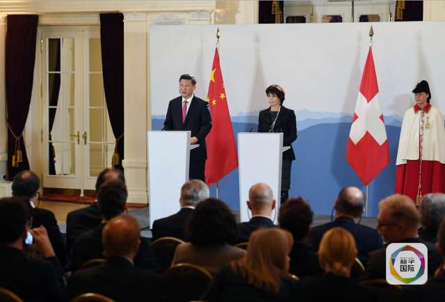 1月16日,國家主席習(xí)近平在伯爾尼同瑞士聯(lián)邦主席洛伊特哈德舉行會談。 這是會談后,兩國元首共同會見記者。(新華社記者 饒愛民 攝)