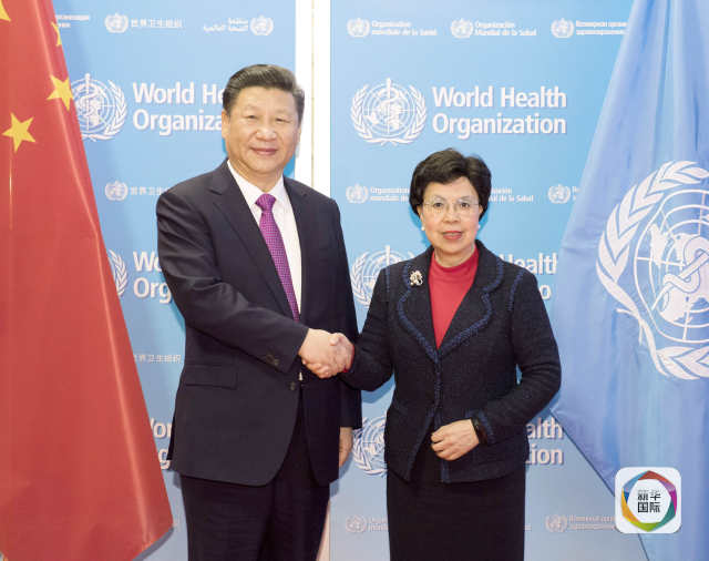 1月18日,國(guó)家主席習(xí)近平在瑞士日內(nèi)瓦訪(fǎng)問(wèn)世界衛(wèi)生組織并會(huì)見(jiàn)陳馮富珍總干事。(新華社記者李學(xué)仁攝)
