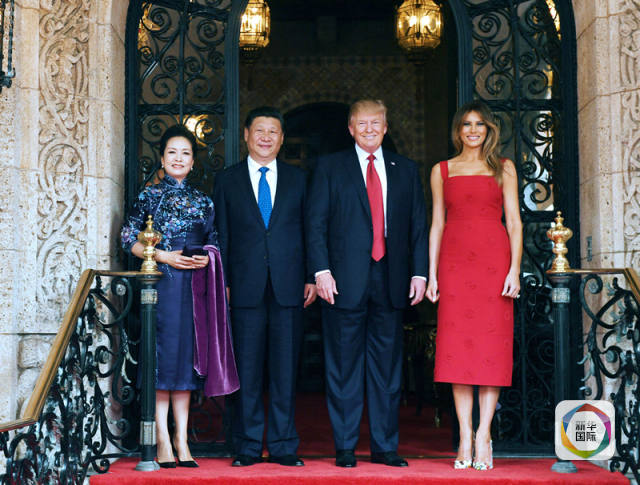 當(dāng)?shù)貢r(shí)間4月6日,國家主席習(xí)近平在美國佛羅里達(dá)州海湖莊園同美國總統(tǒng)特朗普舉行中美元首會(huì)晤。這是習(xí)近平和夫人彭麗媛同特朗普和夫人梅拉尼婭合影留念。(新華社記者饒愛民攝)