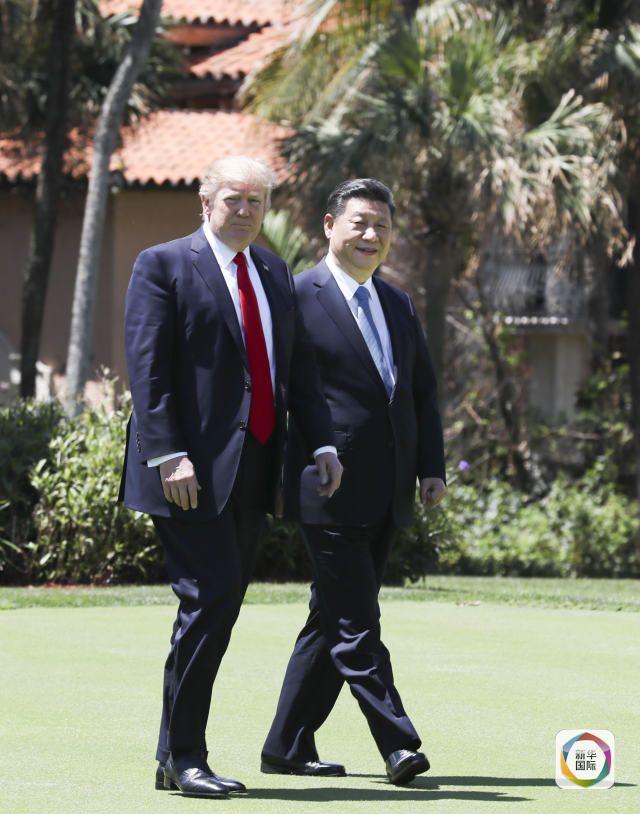 當地時間4月7日,國家主席習近平在美國佛羅里達州海湖莊園同美國總統(tǒng)特朗普舉行中美元首第二場正式會晤。會晤后,習近平同特朗普到秀麗宜人的海湖莊園中散步,在輕松友好的氣氛中繼續(xù)就兩國友好合作進行討論。(新華社記者饒愛民攝)