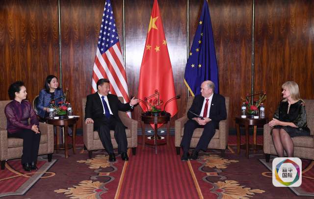 當地時間4月7日,國家主席習近平在美國阿拉斯加州安克雷奇會見阿拉斯加州州長沃克。(新華社記者饒愛民攝)