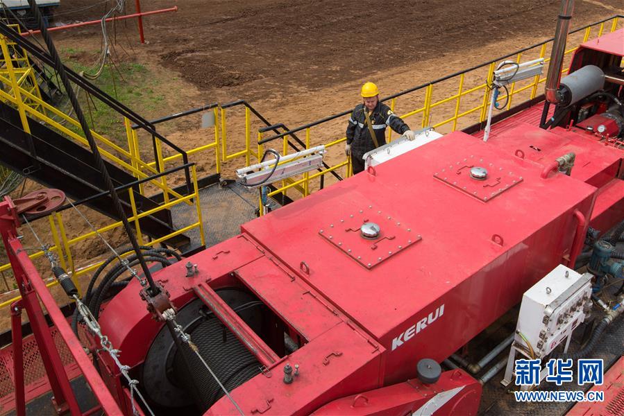 6月2日,在俄羅斯伊熱夫斯克,工人在UDM項目鉆井現場作業(yè)。新華社記者白雪騏攝