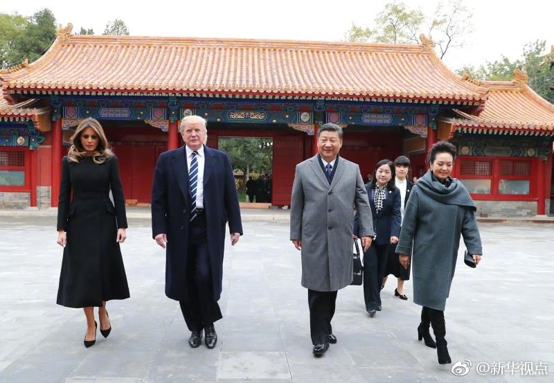 新華網(wǎng)北京11月8日電? 國家主席習(xí)近平和夫人彭麗媛11月8日陪同來華進(jìn)行國事訪問的美國總統(tǒng)特朗普和夫人梅拉尼婭參觀故宮博物院。(攝影:新華社記者蘭紅光、劉衛(wèi)兵、謝環(huán)馳 據(jù)新華社“新華視點(diǎn)”微博報(bào)道)