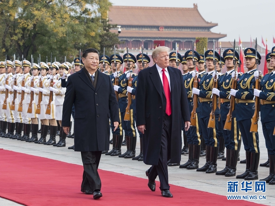 11月9日,國家主席習(xí)近平在北京人民大會堂東門外廣場舉行歡迎儀式,歡迎美利堅合眾國總統(tǒng)唐納德·特朗普對中國進(jìn)行國事訪問。 新華社記者李濤 攝