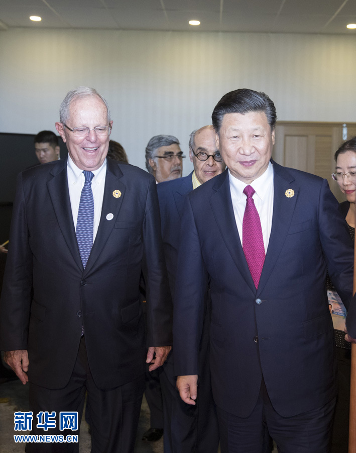 發(fā)表演講后,習(xí)近平簡短會(huì)見了專程前來聆聽演講的秘魯總統(tǒng)庫琴斯基。