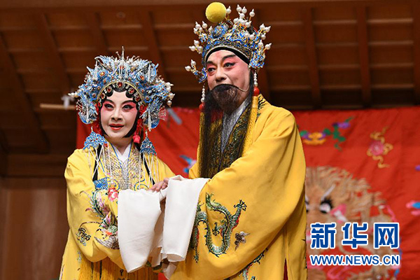 12月20日,在日本東京國(guó)立能樂堂,中國(guó)著名昆曲表演藝術(shù)家蔡正仁(右)和張靜嫻表演昆曲《長(zhǎng)生殿》。新華社記者 姜俏梅 攝