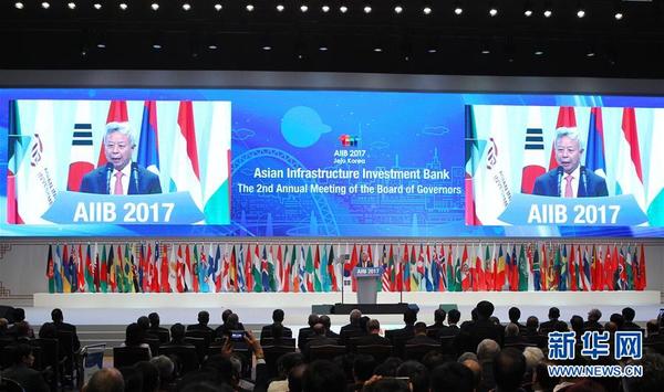 【第三次“吸粉”】2017年6月16日,亞投行宣布其理事會已批準3個新意向成員加入,分別為阿根廷、馬達加斯加和湯加。至此,亞投行成員總數(shù)擴至80個。圖為2017年6月16日,韓國濟州,亞投行第二屆年會開幕式現(xiàn)場。