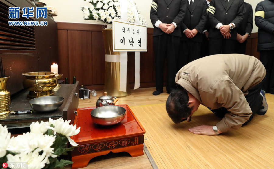 12月23日,韓國忠清北道堤川市,韓國總理李洛淵視察運動中心火災現場,并吊唁火災遇難者。據報道,21日,韓國忠清北道堤川市一運動中心發(fā)生火災,造成29死29傷,其中20名死者在火災發(fā)生時位于大樓2層的桑拿房內。近日,韓媒公布了火災現場的一組照片。照片顯示,桑拿房堆積了各種洗浴用品,應急出口幾乎被封死。(圖片來源:東方IC)