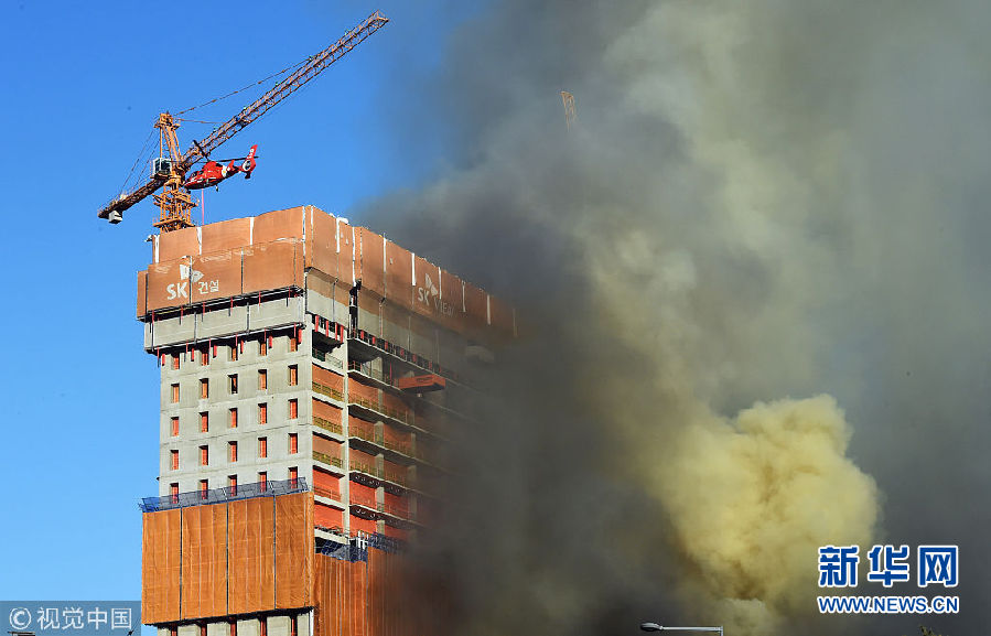 韓國水原市建筑工地發(fā)生火災(zāi) 現(xiàn)場濃煙滾滾