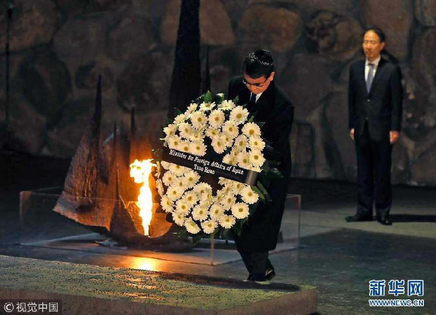 12月25日,耶路撒冷,日本外相河野太郎訪問耶路撒冷,參觀大屠殺紀(jì)念館,獻(xiàn)花悼念死難者。(圖片來源:視覺中國(guó))