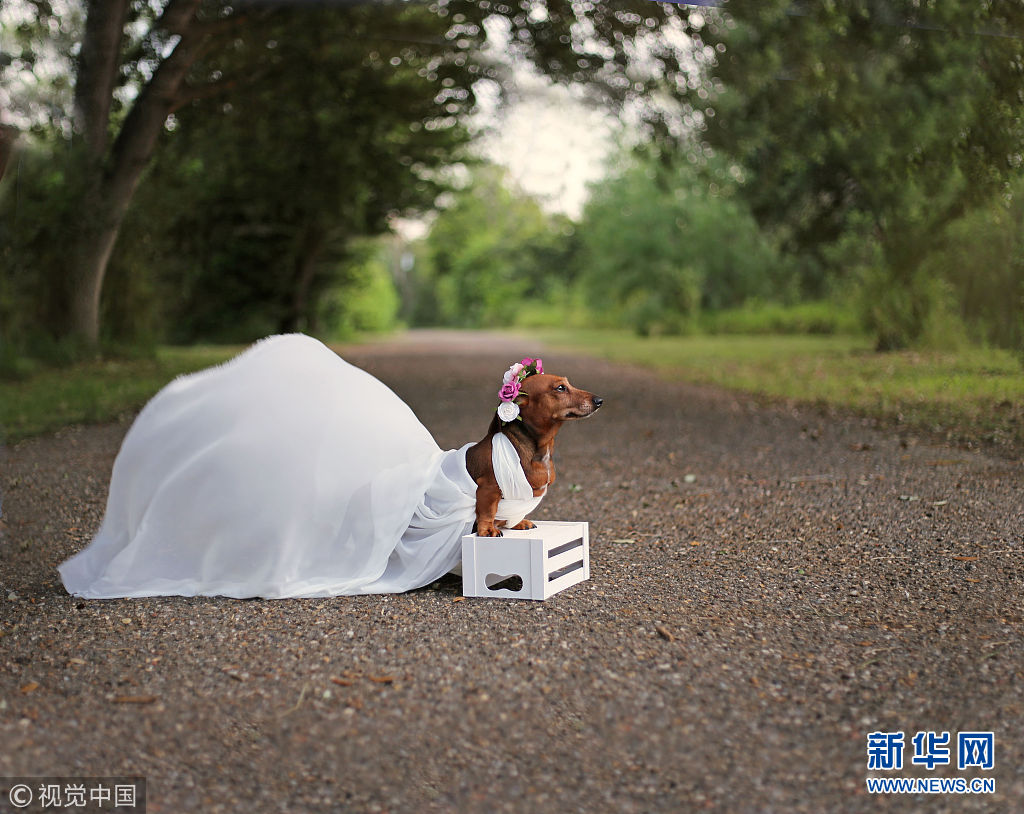 2016年6月12日消息(具體拍攝時間不詳),美國德克薩斯州麥卡倫市,商業(yè)攝影師Belinda Schenk為一對臘腸犬和他們剛出生的6只寶寶拍了一組別出心裁的唯美寫真。(圖片來源:視覺中國)