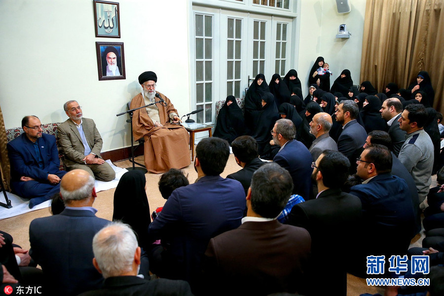 1月2日,伊朗德黑蘭,伊朗最高領(lǐng)袖哈梅內(nèi)伊?xí)娨晾恃车勒呒胰?,并在會面上發(fā)表講話。據(jù)媒體報(bào)道,哈梅內(nèi)伊稱國內(nèi)爆發(fā)的抗議活動是由外國勢力操控。他表示:“近日,伊朗的敵人向這些鬧事者們提供著金錢、武器和政治的支持,以讓他們來傷害伊朗”。(圖片來源:東方IC)