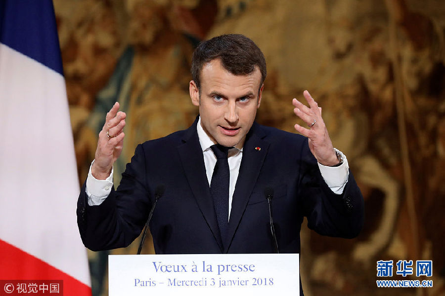 法國(guó)總統(tǒng)馬克龍向記者團(tuán)送上新年祝福