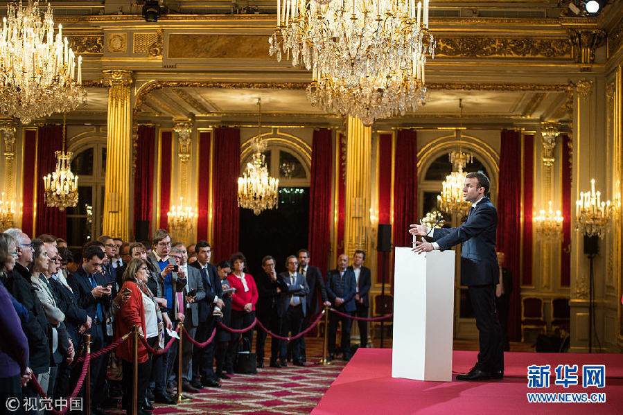 法國(guó)總統(tǒng)馬克龍向記者團(tuán)送上新年祝福