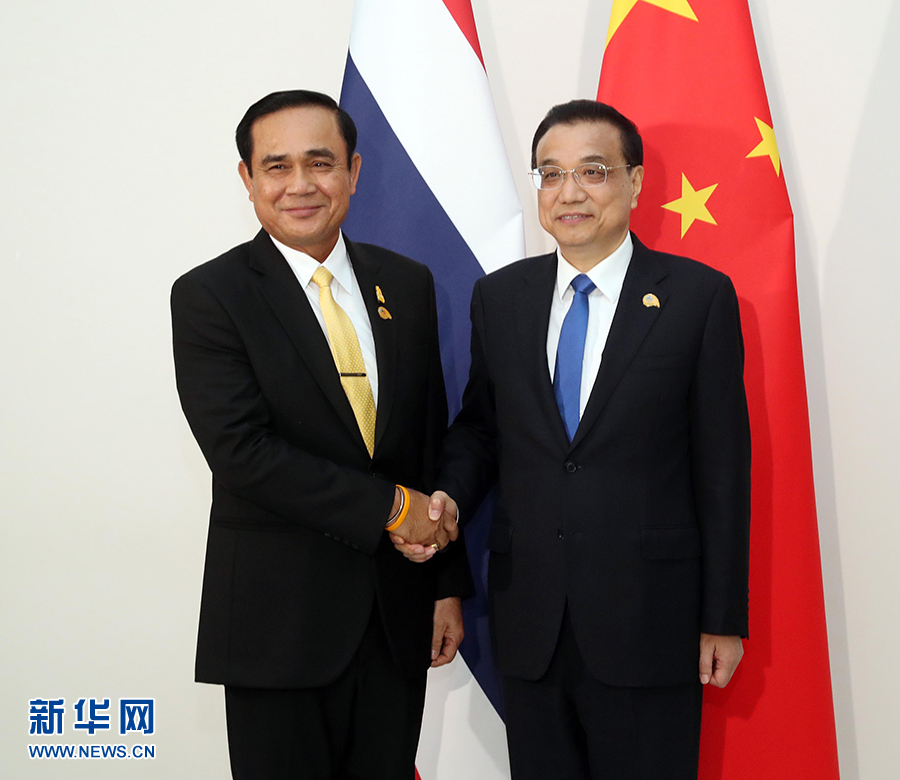李克強表示,中泰一家親深入人心,兩國關系發(fā)展勢頭很好,各領域合作持續(xù)推進。上個月,中泰鐵路項目一期工程動工,標志著中泰合作邁上新臺階。希望雙方再接再厲,推動項目順利實施,并帶動中泰其他領域合作向前邁進。中方愿加強“一帶一路”倡議同泰國“東部經(jīng)濟走廊”等發(fā)展戰(zhàn)略對接,提升中泰貿易便利化水平,加強經(jīng)貿、旅游、科技等領域合作,更好實現(xiàn)互利共贏。
